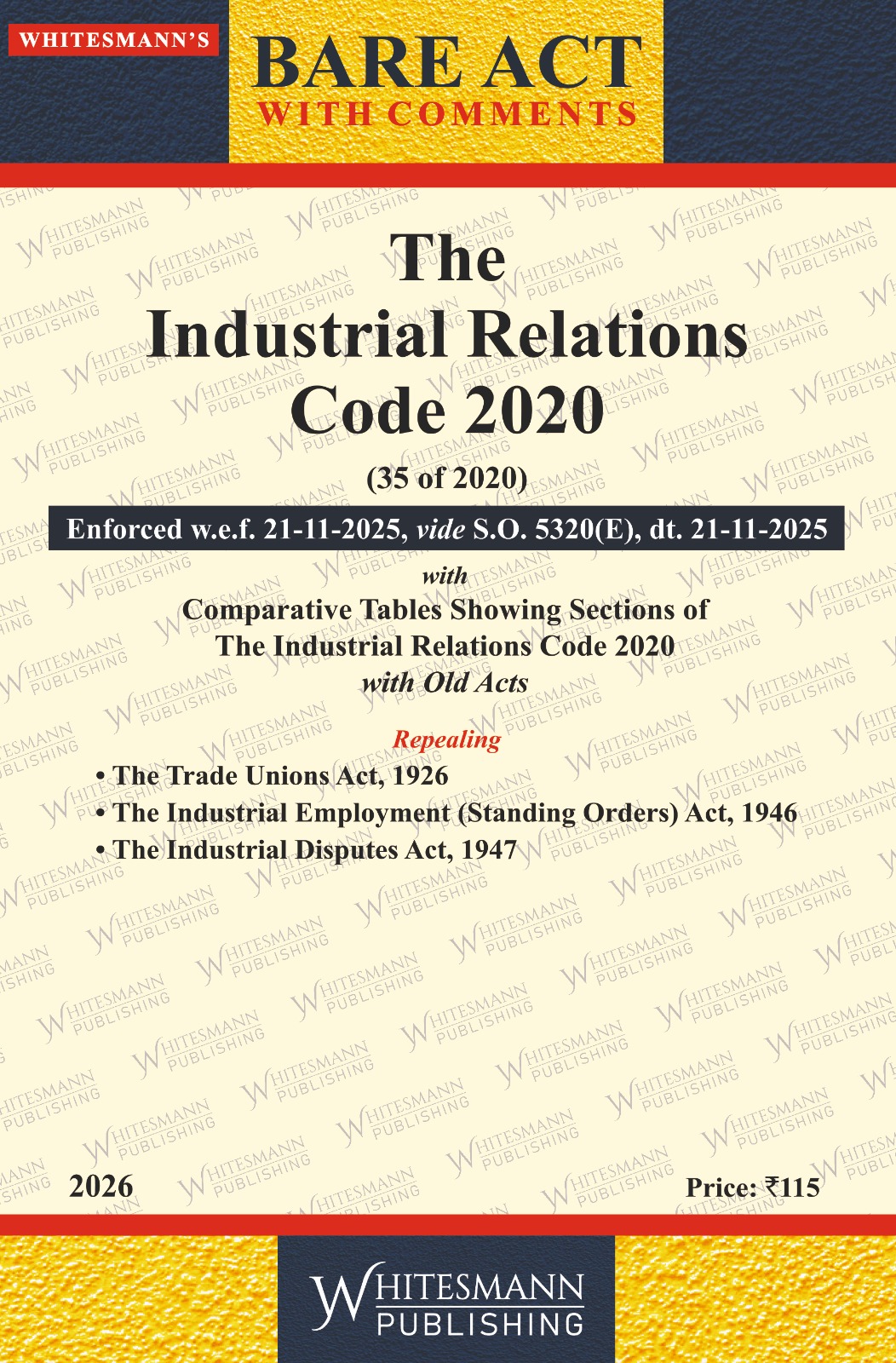 The “Industrial Relations Code, 2020 (35 of 2020) Bare Act First Edition 2026” is an updated legal publication that provides the full, official text of the Industrial Relations Code, 2020. This edition includes the updated statutory text of the Act and is enhanced with features like a comparative study of how it changed previous laws, detailed section notes, and integrated government notifications to ensure comprehensive and current information for legal and professional use.